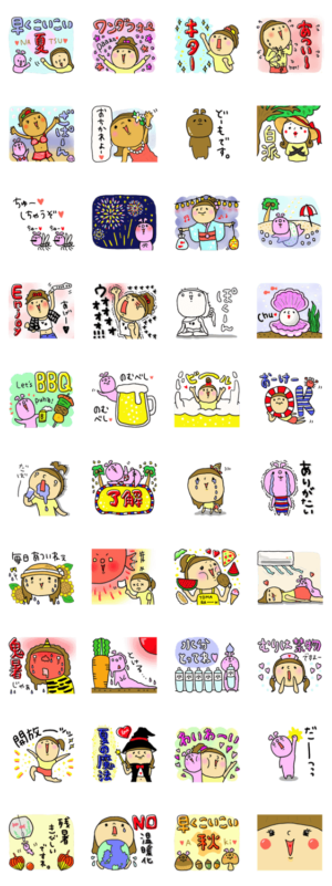 育児と家事でお疲れのママ。夏は元気にカラフルに!大人のゆるかわスタンプ。素朴で味のある第19弾。