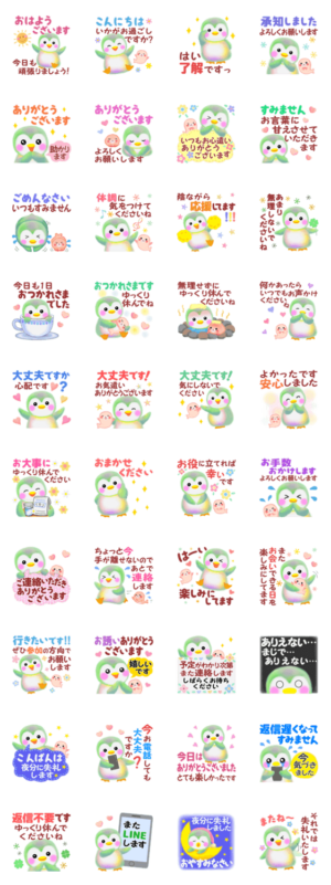 気づかいや挨拶、敬語。日常よく使う長文のメッセージを集めたペンギン「pempem」 のスタンプです♪