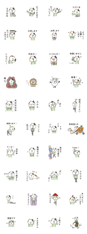 ゆるっとわかる人にはわかるヨガな三毛猫スタンプ。みけ猫好きもヨガ好きさんにも!Accoooo より発売