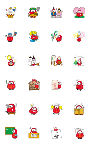 受験の合格を祈願した「ふくふくだるま」シリーズ。 受験期の親子向けスタンプです。analogmama より発売