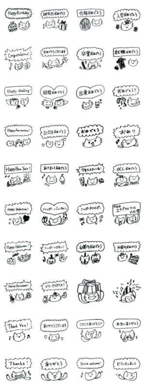 シンプルねこのおめでとうありがとう スタンプ画像一覧