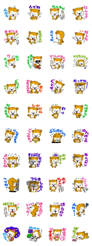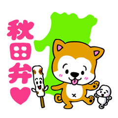 秋田県の方言 秋田弁のスタンプです。かわいい秋田犬の他にも、ハタハタやきりたんぽも登場します。めんけぇがらみんなしてなんとが使ってけれなぁ。