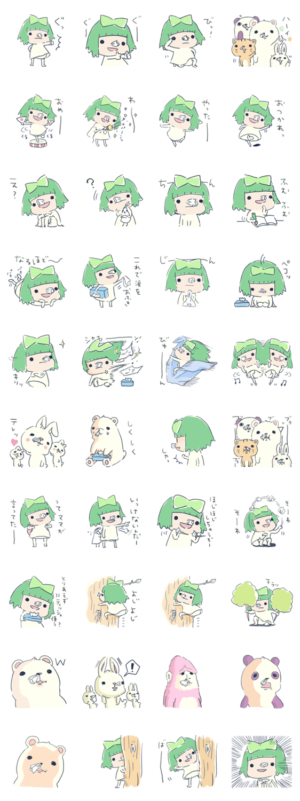 イラストレーター【 ペコ 】スタンプ第13弾!!ティッシュちゃんとこよりちゃんの仲良しスタンプ。パルプタウンの愉快な動物達も登場するハートフルで心温まるスタンプ2