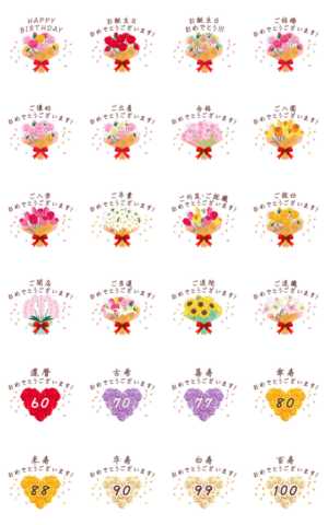 ずーっと使える、花束のお祝いスタンプ。 スタンプ画像一覧