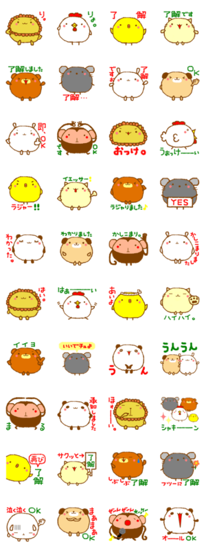 丸っこい動物イラストで、色々な「了解」を描きました。毎日、誰にでも使える便利なスタンプです。