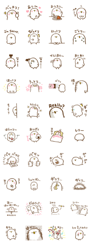 生真面目な鳥『ピスケ』単体のスタンプです。語尾が何かと「りー」です。イラストレーター・漫画家【カナヘイ】スタンプ第13弾。