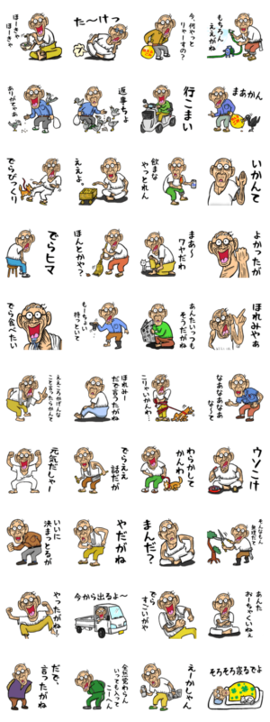 名古屋弁おじいさんスタンプ第三弾です。愛知県名古屋市に住んでいる元気なおじいさんが、愛知県の方言、名古屋弁を喋ります。