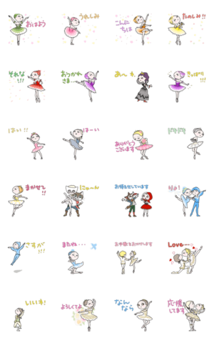 バレエ眠りの森の美女のキャラクターを動くスタンプにしましたミガクカナ より発売