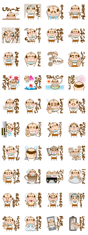 ご好評いただいているふくいち郎おっちゃんスタンプ第3弾!今回は福井弁と標準語もあるから日常会話で使いやすい!おっさんの方言や表情がGOOD!男女を問わず楽しんで!ツーサン より発売