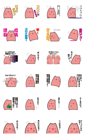 京都大好きキョトンとしたブタのきょとん。 コロナに負けるな、ロックダウン、コロナブルー、お家にいよう、STAY HOME, などのスタンプを集めました。