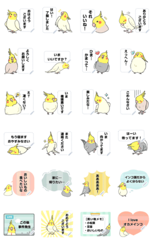 オカメインコのメッセージスタンプです。文字を自由に入力できます。小鳥/ことり/オカメ/シンプル/無難 現在この商品は一部のスマートフォン版LINE 10.3.0以上のトークルームでのみ使用できます。動作環境の最新情報はヘルプをご確認ください。柴田きいち より発売