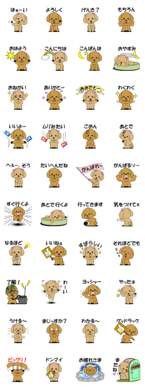 かわいいトイプードル犬がいろいろな動作と表情であなたの言葉をサポートします。