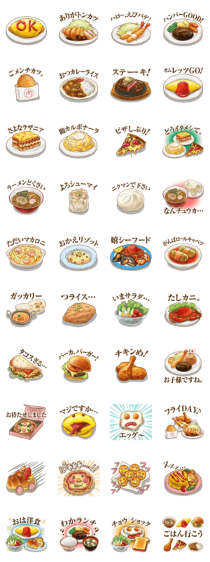 あいさつパンの続編、会話に使え飯テロもできるダジャレ集。トンカツ、オムライス、ハンバーグといった洋食を中心に、ラーメンや中華まん、パスタやピザ等のイタリアンも。MRM より発売