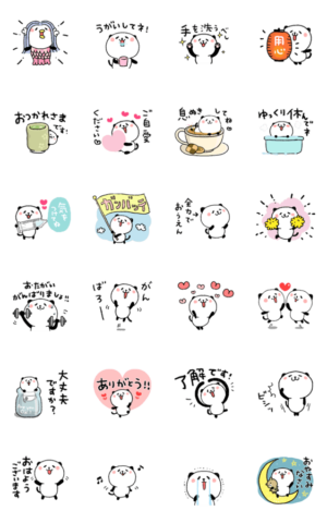 毎日がんばっている人へ!応援といたわりのスタンプです。ウイルスなんかに負けない!ほっこり可愛いパンダねこが動いて応援します!アマビエ様もいるよ♪