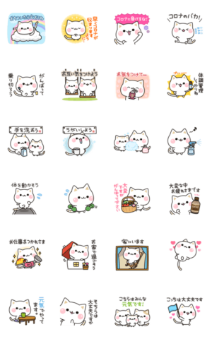 気遣いのできるねこの、手洗いうがい注意喚起などコロナウイルスにまつわる言葉のアニメーションスタンプ!家にいる人も働く人にも送れる♪
