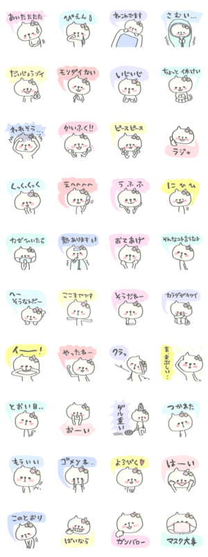 か弱いねこの絵文字です。お腹痛いとき、頭痛いとき、具合悪い時に可愛くメールを送りたい時に。chiico より発売