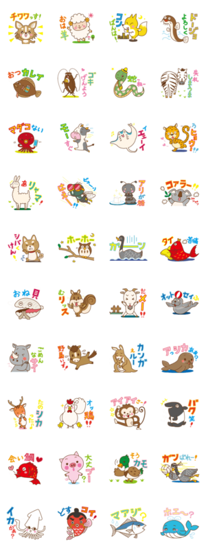 ゆるかわ動物たちのダジャレ系スタンプ。「おはよう」から「おやすみ」まで、クスッとお楽しみください。mikityeeee より発売