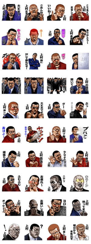 見た目はヤクザかヤンキーか 顔が恐くて不良に見られてしまうが 本当は優しい 上村(うえむら)さん向けの 強面(コワモテ)スタンプです。 ウエムラさんへのプレゼントにも