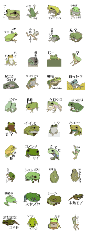 カエル!かえる!蛙! スタンプに書いてある文字一覧