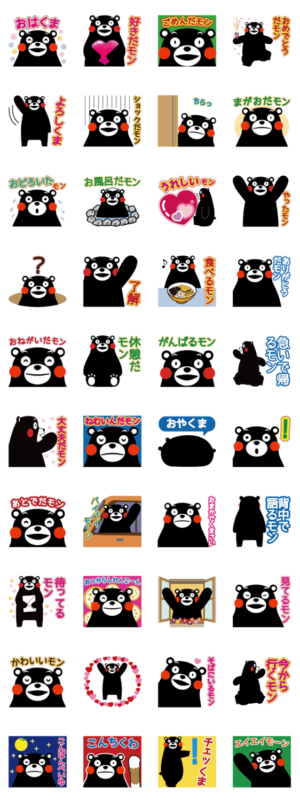 熊本大好き!熊本県営業部長くまモンの日常会話スタンプです。おなじみのくまモン語があるよ。着せかえも販売中!諾番号©2010熊本県くまモン#K21256モモノキ より発売