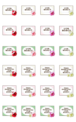母の日のカーネーションのメッセージカードです。 大小2種類あります。メッセージを添えて送ってください♪ 現在この商品は一部のスマートフォン版LINE 10.3.0以上のトークルームでのみ使用できます。動作環境の最新情報はヘルプをご確認ください。JunJun より発売
