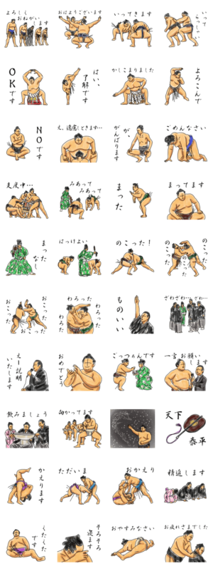 相撲(すもう)、力士の世界を水彩、水墨画風スタンプにしてみました。あいうぱ より発売