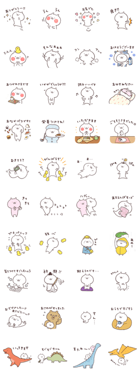 ほのぼのうさまるの柔らかタッチの絵で、家族、友人、恋人など、なんでも使いやすいです。ちょこっとシュールなスタンプも混ざってるので、汎用性がきくシリーズです。