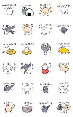 丁寧な文鳥さんのスタンプです。日常的に使いやすい仕様となっております。ぽこ より発売