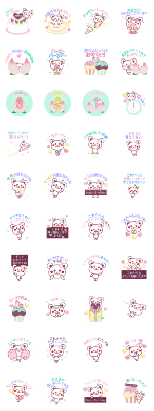 真っ白なクマがキュートな誕生日用のスタンプです。友人に送るといつも喜ばれます。