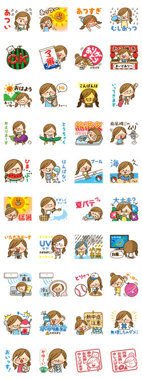 夏を楽しんでいる仕草がたっぷり収録されたスタンプです。かわいいスタンプをラインに飾ってトークを盛り上げましょう!