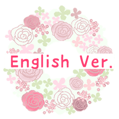 さくら色やピンクを中心に春色・パステルカラーのお祝い言葉を集めた花いっぱいの大人かわいいスタンプの英語版です。結婚・出産・就職・誕生日などに使えます。
