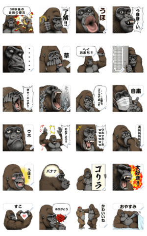 ゴリラのメッセージスタンプ。スタンプにテキストを最大100文字まで入れて自由に楽しめます。テキストは購入後も何度でも変更可能。 現在この商品は一部のスマートフォン版LINE 10.3.0以上のトークルームでのみ使用できます。動作環境の最新情報はヘルプをご確認ください。大友しゅうま より発売