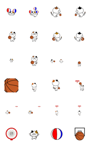 シュールでかわいい三毛猫の動くスタンプ、バスケットボール編です。mikeneko より発売