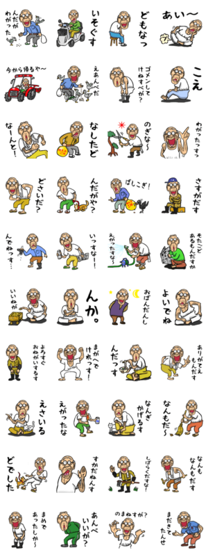 秋田弁おじいさんスタンプ第三弾です。秋田県に住んでいる元気なおじいさんが、秋田県の方言、秋田弁を喋ります。Brody Machine より発売