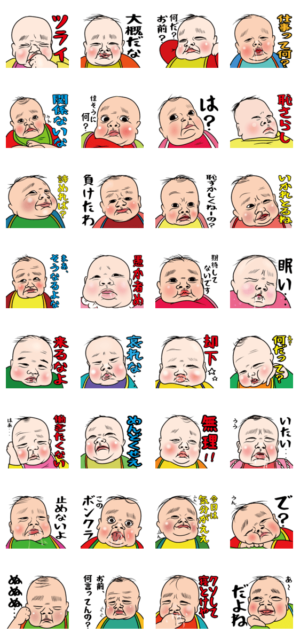毒舌おもしろ赤ちゃん4のスタンプで『このボンクラ』や『恥さらし』のスタンプはインパクトが強いのでぜひ使ってみてください。