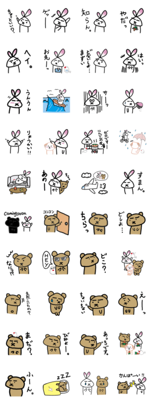 ちょっと変わり者のウサギのウーさんスタンプ3です。クマチンも登場。