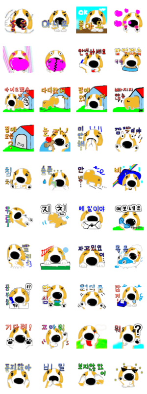 あいらしい 犬のスタンプ。のハングルバージョン期間限定販売。とも より発売
