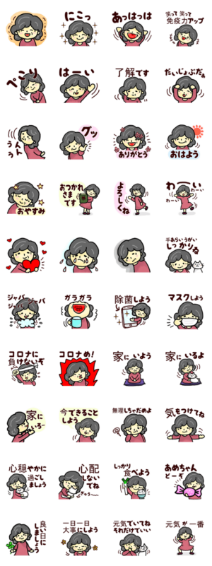 おばあちゃんの笑顔で過ごそうスタンプです。てんじくあおい より発売