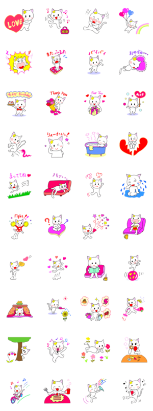 かわいい白ねこミルキーのハッピーライフ。元気な笑顔と純粋な感情を表現したスタンプです。チコちゃん より発売