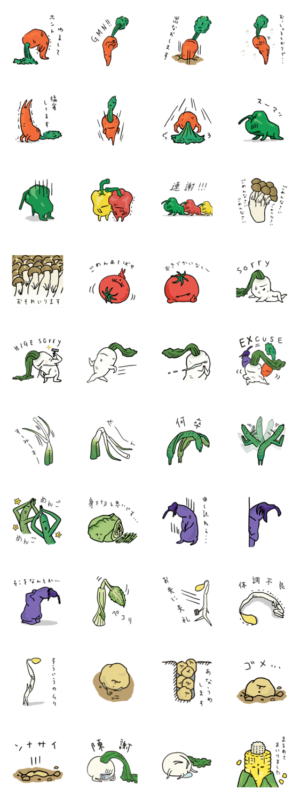 サンリオキャラリーマン総選挙エントリーナンバー9。かわいくなくてごめんなさい・・・!何かと謝ることの多い現代社会で、謝罪と泥にまみれて生きる野菜たちです。SANRIO より発売