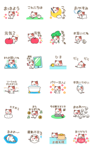 シンプルで使いやすいぶち猫さんのアニメーションスタンプです。コロナの呼びかけにも!