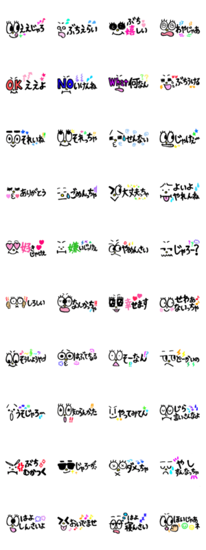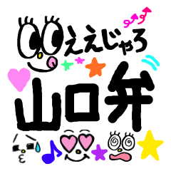 山口県の方言、山口弁のカラフルで可愛いスタンプです。大きな顔と大きな文字でぶち見やすくて、ぶち使いやすいんよ。広島弁と少し似ちょるかも。ありがとうおめでとうちゃん より発売