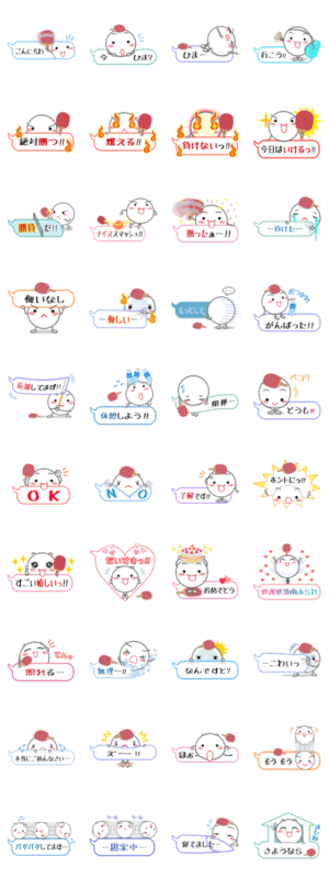 卓球のピン球スタンプの第2弾です。吹き出しの会話は、卓球ファンの方の LINEスタンプにピッタリです!!aki より発売