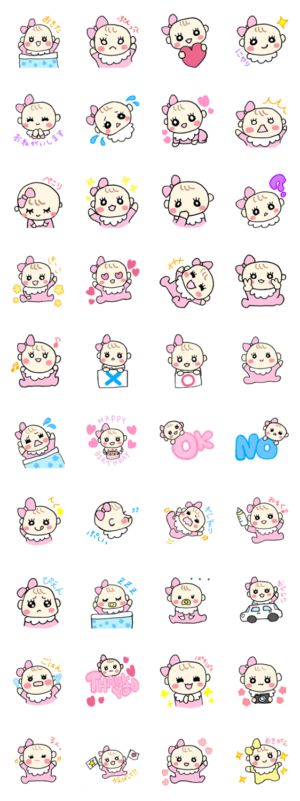 女の子赤ちゃんスタンプ(文字入り) スタンプ画像一覧