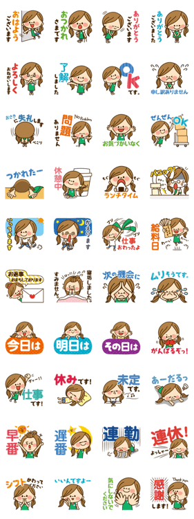 かわいい主婦の1日第11弾【パート/アルバイト編】は働くかわいい女の子のスタンプです。パパや家族、ママ友達との毎日の会話にもぜひお使いください。