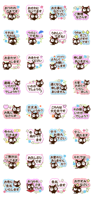 『小さい黒猫スタンプ』から、敬語で丁寧な言葉を集めた【大人な返信編】になります。基本的な言葉を集めているので、どなたにでも使えるスタンプです。【かたこ】