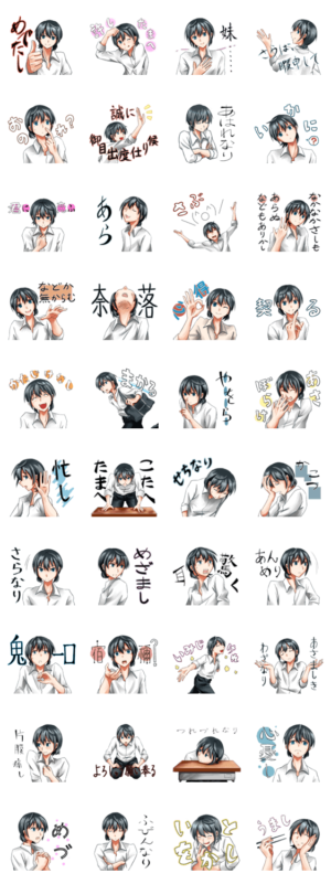イケメン男子高校生が、なぜか「いとをかし(おもしろ!)」「おのれ?(え?俺?)」「まかる(行きます!)」と古文でしゃべるスタンプです。