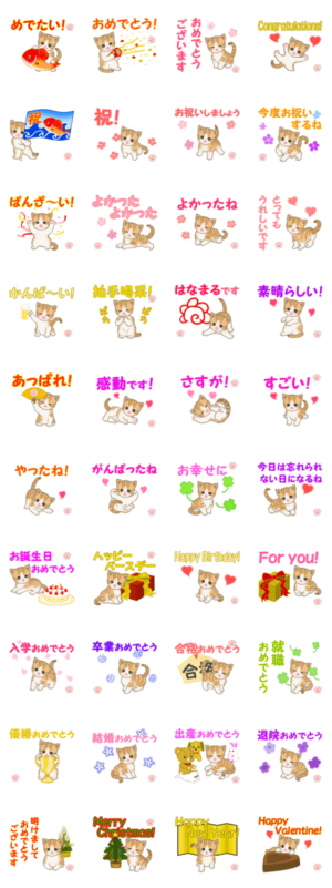 ちび猫 おめでとうスタンプ スタンプ画像一覧