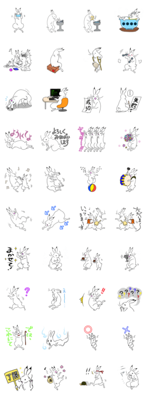 オリジナル鳥獣戯画、ウサギだらけスタンプです。 日常生活にどうぞ。ユピスタイル より発売