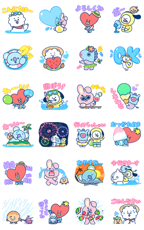 色がかわいい癒されるユニバースターBT21サマータイムスタンプ、キュートです!